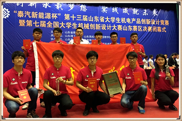 5月6日至8日,由山东省教育厅主办的“泰汽新能源杯”第十三届山东省大学生机电产品创新设计竞赛在山东理工大学举行。我院共有9项作品参加决赛,获一等奖4项、二等奖4项、三等奖1项,并有2项作品分获科明、邵阳企业主题奖学金。杜洪香、解永辉、康立业、于翠玉四位教师获优秀指导教师称号,我院再度蝉联“优秀组织单位”奖。