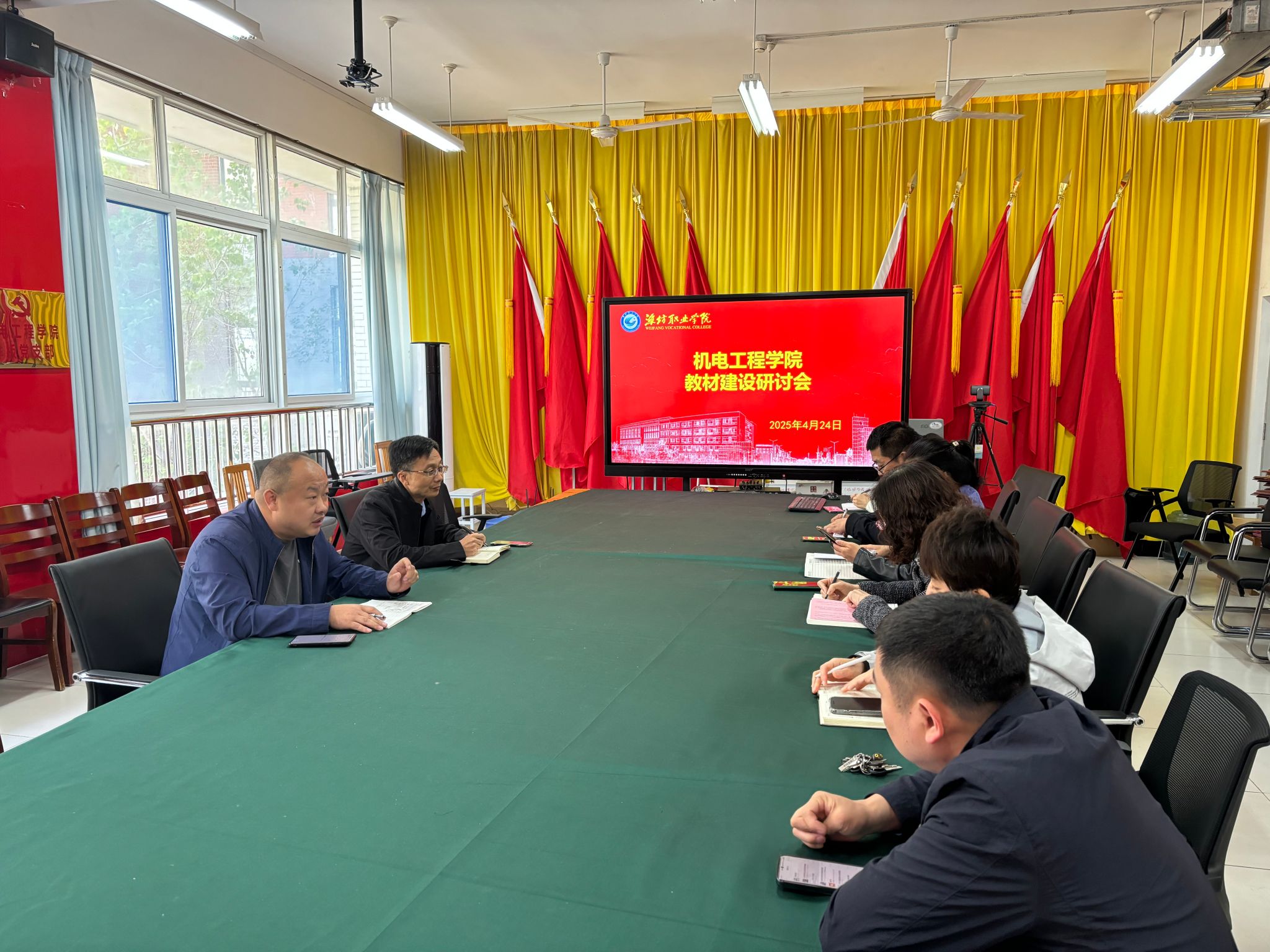 会议伊始,机电工程学院主要负责同志强调了教材建设在人才培养中的核心作用,并对当前教材编写工作提出具体要求。会议明确三项重点任务:一是加快推进数字化教材建设,由各科室负责人牵头,组织强大的编写团队,利用五一假期时间集中完成4-6本高质量数字化教材的样章编写工作;二是开发新业态教材,包括活页式、工作手册式等新型教材,同时鼓励与合作企业联合编写,确保教材内容与行业需求紧密结合;三是深入挖掘专业课程中的思政元素,在教材编写过程中有机融入课程思政,打造具有机电特色的精品教材。机电工程学院主要负责同志特别指出,教材开发要注重实用性,结合行业发展新趋势,确保教材质量和特色,避免同质化现象。