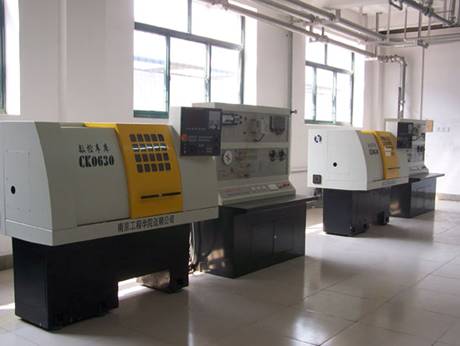 主要实训设备:宝鸡CK50P数控车床10台,大连CKA6150数控车床5台、济南机床厂CK6140数控车床2台