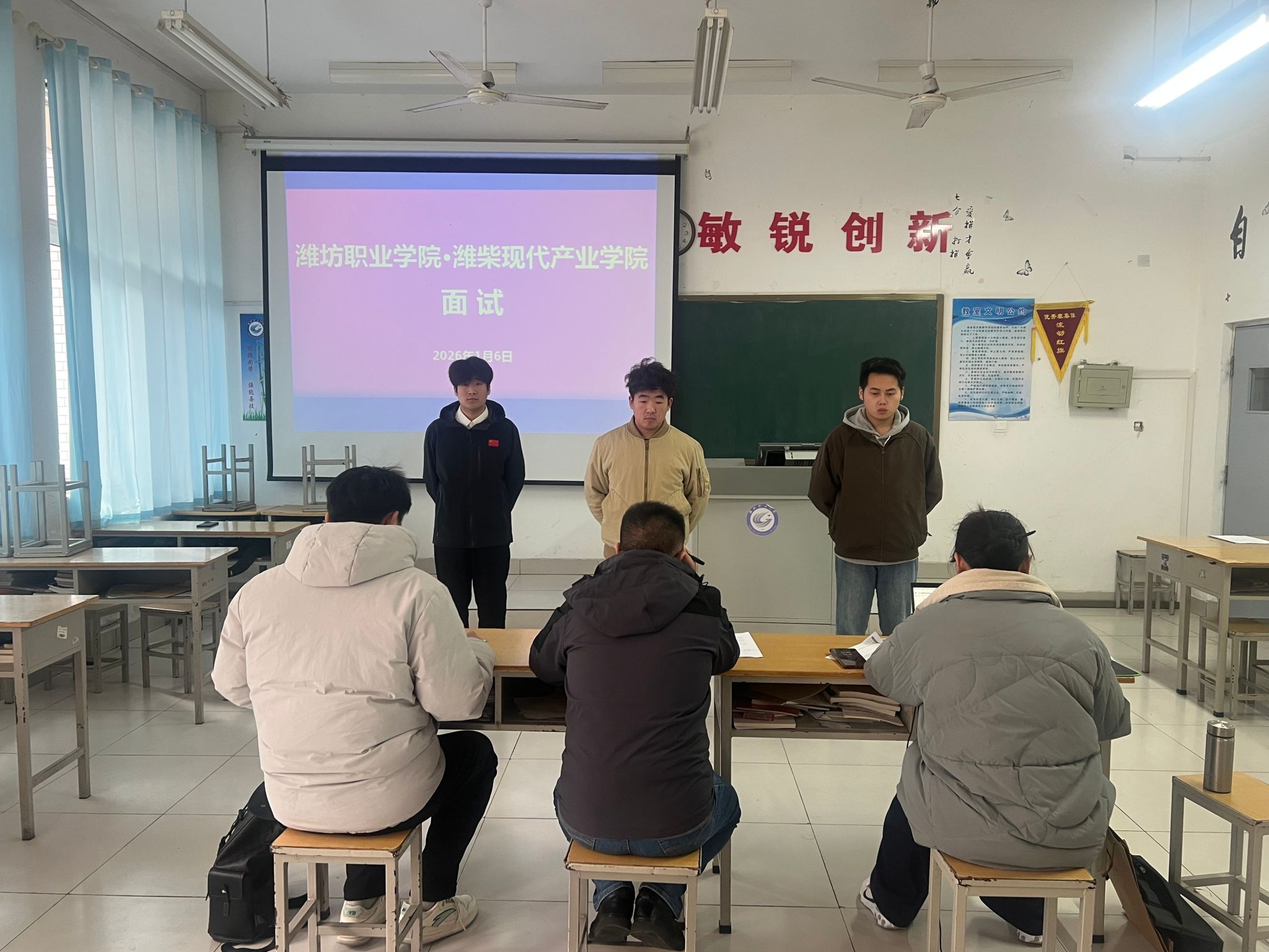 为深化产教融合,推动校企协同育人,落实潍坊职业学院·潍柴现代产业学院项目建设,1月6日,潍柴集团到汽车工程学院、机电工程学院开展潍柴现代产业学院学生选拔面试工作。汽车工程学院相关负责人、产学合作办公室相关教师参加活动。