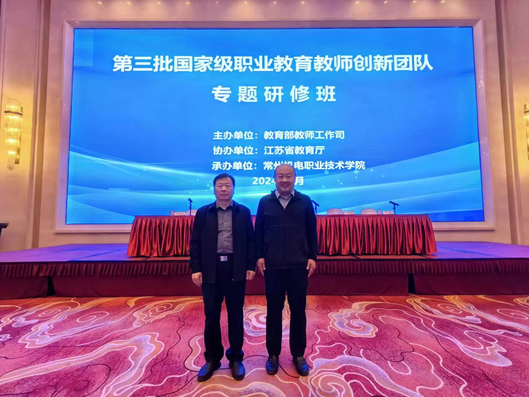 近日,教育部组织在常州机电职业技术学院举行第三批国家级职业教育教师创新团队专题研修活动。教育部教师工作司副司长黄小华、江苏省委教育工委副书记潘漫等领导出席会议,第三批国家级职业教育教师创新团队主管领导和项目负责人300余人参加研修,开班式由教育部教师司教师发展处处长赵静主持。我校副校长贺志强、电气自动化技术团队建设项目负责人解永辉教授参加本次研修。