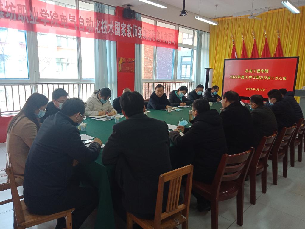 3月19日,学院副院长贺志强带领学院双高办、教务处和科技处负责同志到机电工程学院调研电气自动化技术国家高水平专业群建设,机电工程学院主要负责同志、科室负责同志和双高专业群建设主要成员参加此次调研会议。