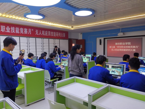 4月27日下午,第七届“学生职业技能竞赛月”无人机应用技能研判比赛在滨海校区无人机产学研一体化创新实训中心举行。