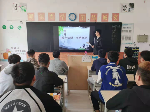 活动中,各班级首先根据“绿色清明·文明祭祀”的理念发出倡议,号召全体师生改变旧的祭祀形式,大力提倡文明祭扫,平安祭祀。提倡献一束花、敬一杯酒、植一棵树,追寻先烈足迹,讲好先辈故事,告别祭扫陋习,营造文明社会新风尚。其次,各班主任围绕清明节的来历和各地习俗,加深学生对清明节的认知,并让学生深刻感受到中华民族优秀的传统文化。最后,强调学生安全教育,强化个人防护、戴好口罩,注意出行的交通安全,特别强调上坟扫墓防火方面的安全意识。