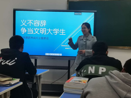 活动中,各班级充分利用微信、微博、抖音、黑板报等媒介,紧扣主题召开了丰富多彩的主题团课、主题班会,涉及到内涵教育、八项文明伴我行、一日养成计划、大学生青春风采、文明用餐光盘行动、共创文明宿舍、美化校园从我做起等多方面的内容。以此帮助同学们了解素质养成提升要求,引导学生养成良好的社会公德意识、行为习惯,倡导学生从点滴开始、从点滴做起、文明学习、文明生活、文明修身、健康成长。