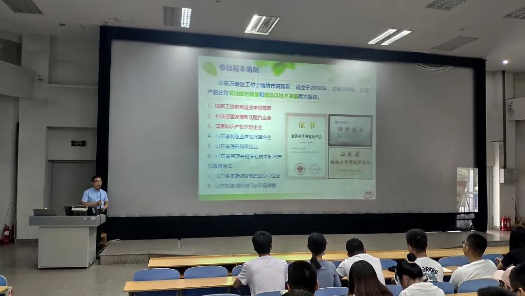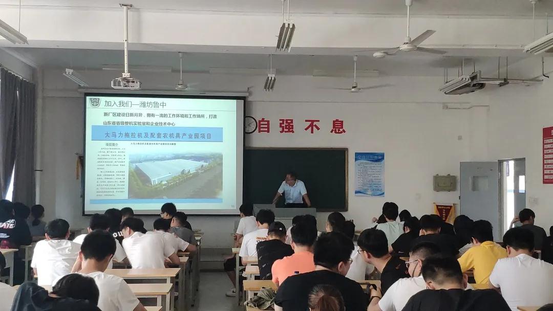 本次校园招聘会一共吸引了山东天瑞重工股份有限公司、青岛三利集团有限公司、山东浩信机械有限公司、潍坊贝特重工股份有限公司、豪迈机械股份有限公司、英轩重工有限公司、华丰动力股份有限公司、山东潍坊鲁中拖拉机有限公司等16家全省企业到场参会,为同学们提供了600多个就业岗位。宣讲会上,招聘单位通过播放公司宣传片、PPT展示、宣传材料发放等方式向同学们介绍了公司的概况、企业文化、职业发展规划、人员需求以及薪金待遇等内容,同学们也准备了个人求职简历和招聘公司进行了面对面的沟通交流。
