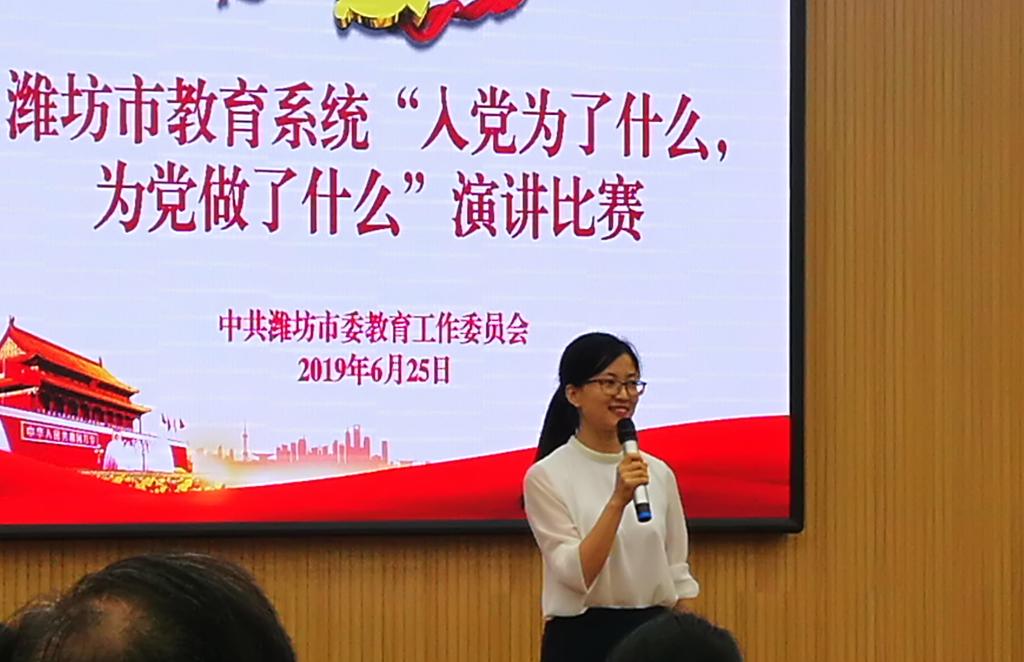 6月25日,潍坊市教育系统“入党为了什么,为党做了什么”主题演讲比赛在潍坊广文中学举行,各驻潍高校、市教育局直属学校选手参加比赛。学院党委副书记宋桂言出席活动,刘凤老师代表学院参赛,并获得驻潍高校组二等奖。