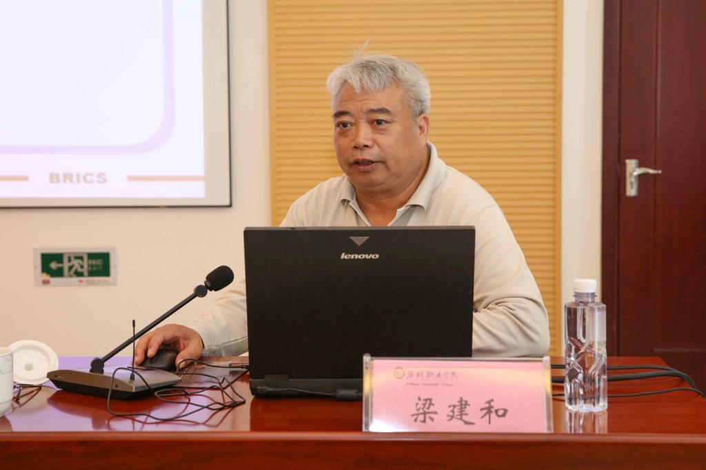6月5日-6月6日上午,2019“一带一路”暨金砖国家技能发展与技术创新大赛综合职业能力测试模块裁判员培训会在我院清泽楼312会议室召开。北京师范大学赵志群教授,一带一路暨金砖国家技能发展国际联盟副理事长、北京企学研教育科技研究院院长刘辉,一带一路暨金砖国家技能发展与技术创新大赛技术委员会副主任、广西机械工程学会副理事长梁建和教授,学院院长王家爱,副院长李瑞昌,教务处、机电工程学院主要负责同志及专家、裁判人员、教师、企业代表50余人参加了会议并进行了研讨。