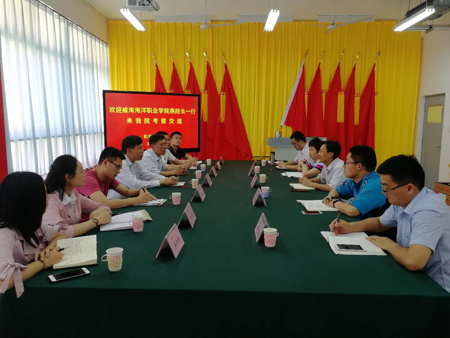 5月29日下午,威海海洋职业学院机电工程系负责人燕居怀教授一行七人到机电工程学院交流考察。
