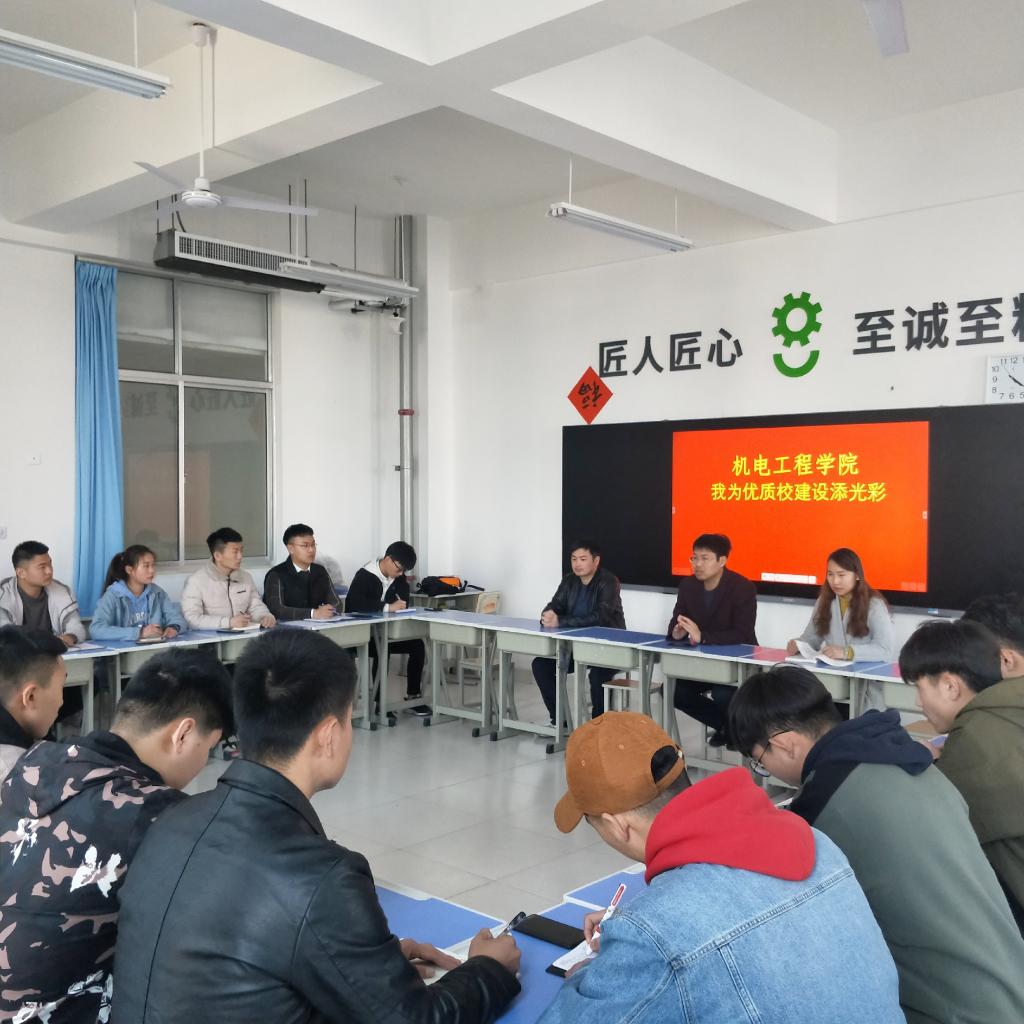 为激励广大青年学生干部积极投身优质校建设,充分发挥学生干部的先进模范作用。4月2日,机电工程学院召开“我为优质校建设添光彩”学生干部座谈会,我院团总支书记、相关辅导员及全体学生干部参加了此次座谈会。