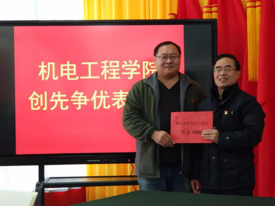 颁奖现场,全体党员和部分青年教师代表认真聆听了机电工程学院党支部书记耿效华的深情讲话,之后,大家纷纷发言表态,决心从身边榜样学起,学先进、争先进,为学院“双高双创”做出自己应有的贡献。
