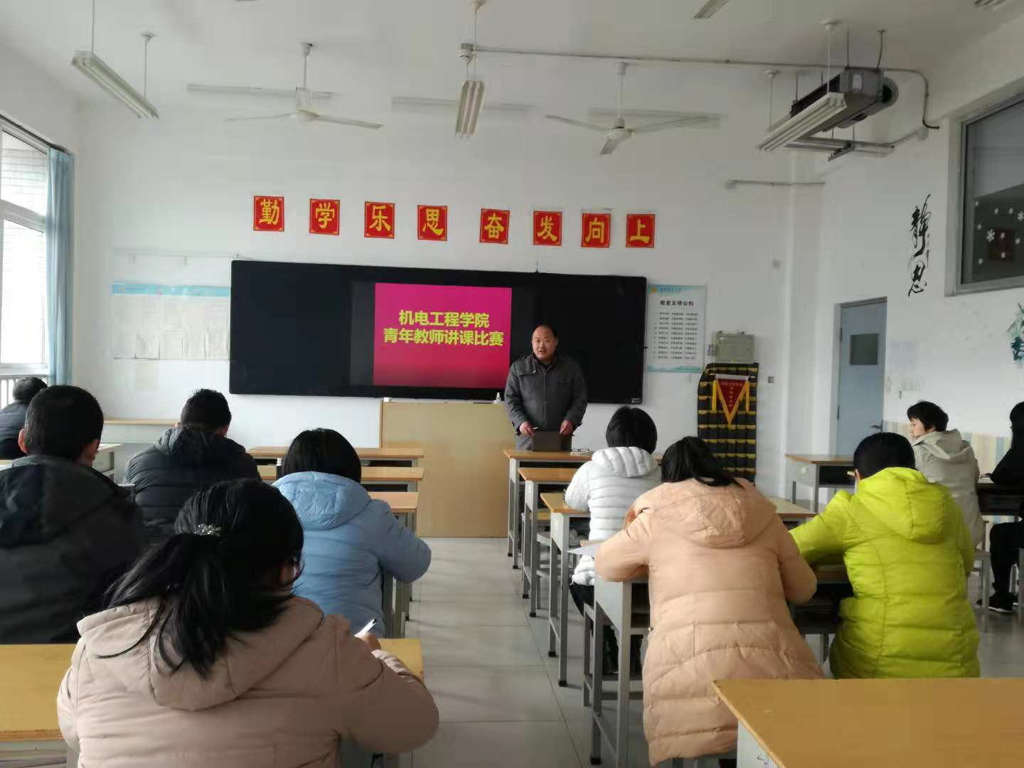 根据学院第五届青年教师教学竞赛的通知精神,12月6日下午,机电工程学院青年教师教学竞赛在惠泽2号楼A208教室隆重举行。历经参赛资料审核、学院初选,晋级决赛的姜文革等7位老师同台竞技,上演了一场精彩纷呈的讲课“大比武”。机电工程学院班子成员、各教研室主任及学院部分老师到场观摩比赛。