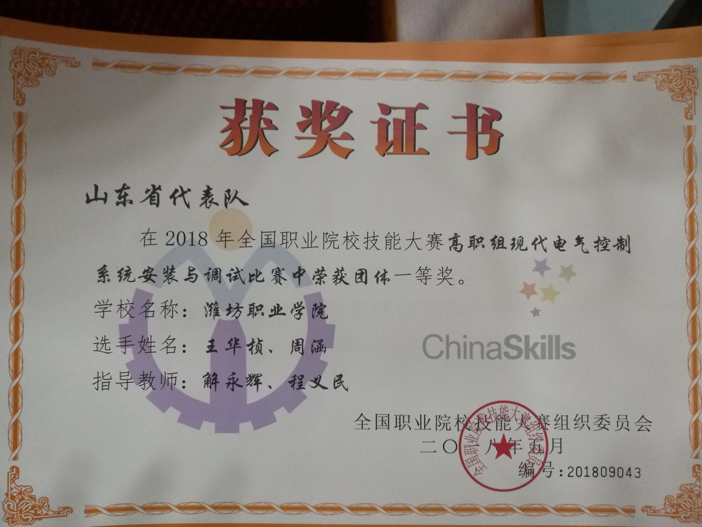大赛以立体车库模拟仿真为题,考察学生的程序设计及线路安装调试及故障排除,结合了传感器技术、人机界面控制技术、变频控制技术和PLC网络技术,比赛内容较往年更加专业、难度系数更大,对学生的综合能力要求非常高。机电工程学院学生王华桢、周涵沉着应战,展现出良好的竞赛风貌和综合素质,特别是团队协作能力,靠着所有成员的稳定发挥,最终获得了赛项团体一等奖。此次优异成绩的取得,与电气自动化专业人才培养方案改革密切相关,也是优质校品牌专业群建设成果的体现。