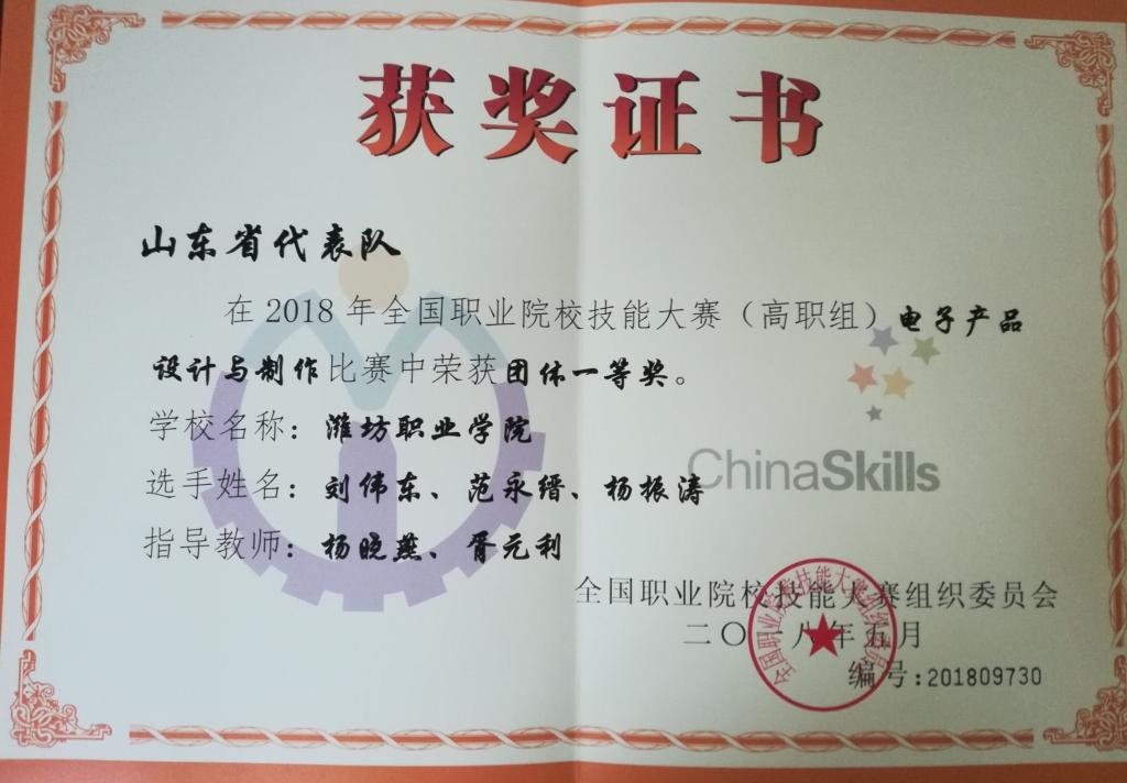5月23日,2018年全国职业院校技能大赛高职组“电子产品设计与制作”赛项在深圳信息职业技术学院举行,共有来自全国各省市的69支代表队参赛。我院机电工程学院学生刘伟东、范永缙、杨振涛组成的山东代表队在比赛中不畏强手,沉着应战,顽强拼搏,通力合作,最终获得该赛项一等奖的好成绩。