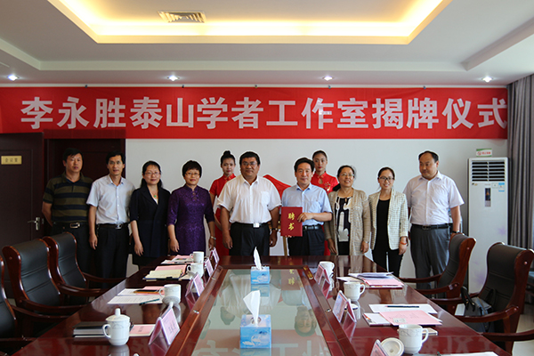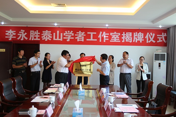 王家爱为李永胜颁发兼职教授聘书并共同为李永胜泰山学者工作室揭牌。