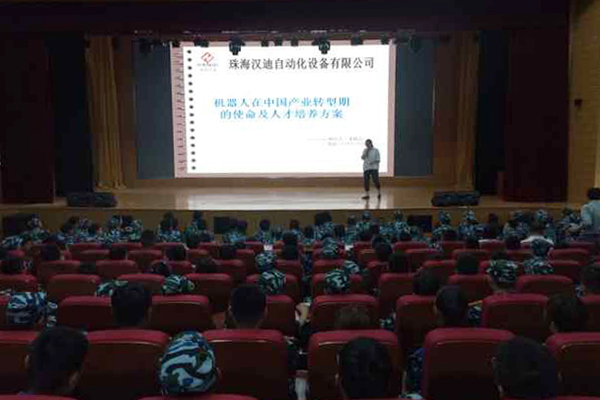 9月9日,机电工程学院邀请珠海汉迪自动化设备有限公司机器人自动化专家李晓五总经理在图书馆报告厅给大一新生进行了工业机器人专题讲座。