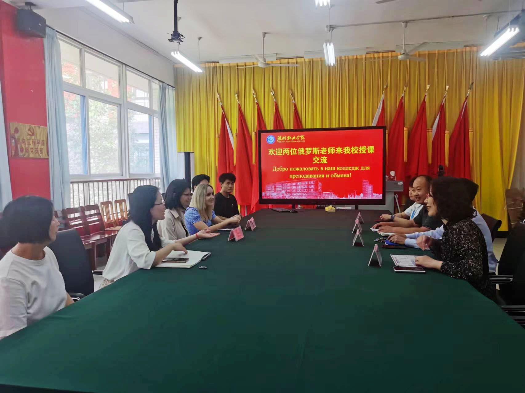机电工程学院负责人对两位教师表示热烈欢迎,介绍了学院办学历史、发展现状及取得的主要成绩。Людмила柳德米拉、Ольга奥尔加老师对学院的热情接待表示感谢,介绍了伏尔加格勒国立技术大学的基本情况等。随后,双方就课程设置、授课情况、学生情况等进行了交流。学生们表示一定会把握这次难得的机会,积极主动学习,不断夯实专业基础,为以后就业打下坚实的基础。