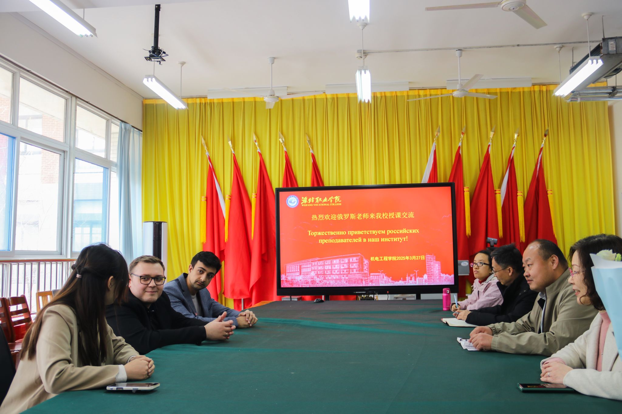 为持续深化中俄教育交流与合作,3月27日,机电工程学院在惠泽2号楼举行欢迎仪式,迎接来自俄罗斯的教师团队来我校授课。机电工程学院负责人、自动化技术教研室负责人、骨干教师、国际交流合作处教师以及学生代表出席此次欢迎仪式。