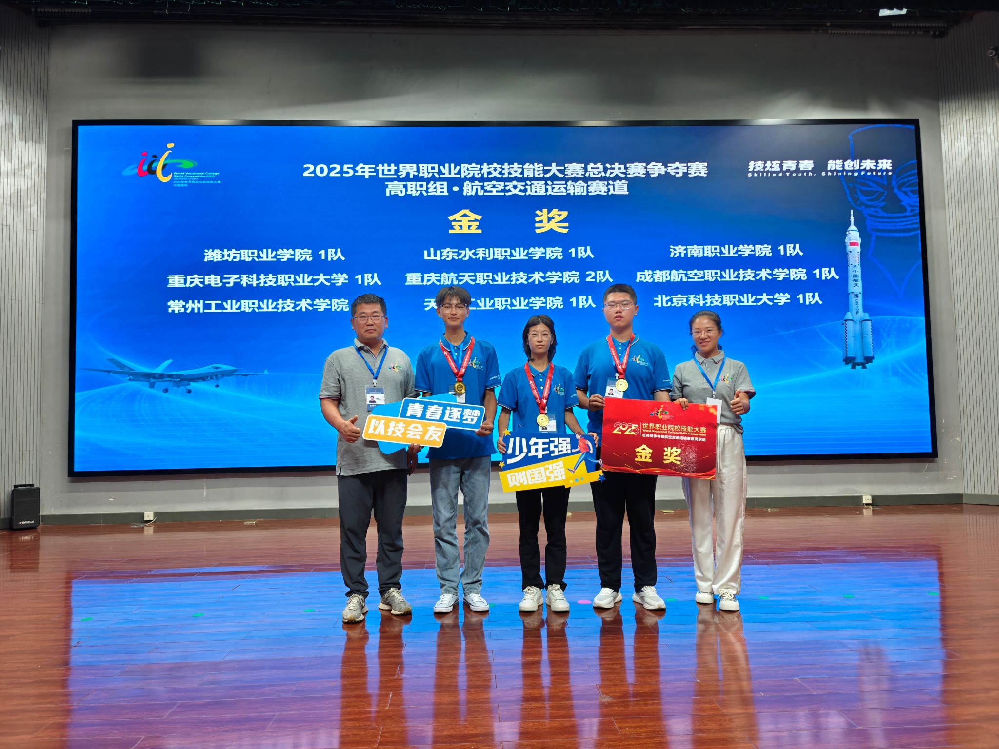 8月23日至27日,2025年世界职业院校技能大赛总决赛争夺赛“航空交通运输”赛道高职1组比赛在成都航空职业技术大学举行,我院机电工程学院无人机应用技术专业学生林晓峰、刘佳永、张研科组成的参赛团队,凭借项目《“以空制空”低空安防无人机AI反制与管理》,从全国28个省(自治区、直辖市)的90支参赛队伍中脱颖而出,成功摘得该赛道金奖。