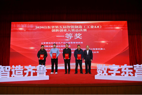 该大赛由山东省总工会、中共山东省委网络安全和信息化委员会办公室、山东省工业和信息化厅、山东省人力资源和社会保障厅、共青团山东省委、山东省科学技术协会主办的省级一类赛事,自2020年7月正式启动,经过四个月的广泛发动,共有智能装备和产品、智能化生产服务、机器人、3D打印四大领域,申报单位来自潍柴动力、中国重汽、国家电网、一汽大众、中铁十八局、山东能源重装集团、胜利油田、临沂市产业技术研究院、青岛科技大学等全省12地市,256个参赛项目。经过专家严格的初审、复审,最终共88个项目脱颖而出,晋级全省总决赛,决赛现场以PPT展示+评委提问的形式,通过明确参赛项目的创新性、完整性、可应用性,以及商业前景进行了展示,共计评选出一等奖10名,二等奖20项,三等奖30项,最终我院科研团队获得一等奖第三名。