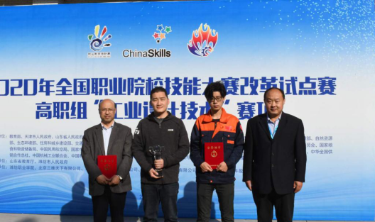 11月6日至11月10日由教育部主办的2020年全国职业院校技能大赛改革试点赛高职组“工业设计技术”赛项在我院举行,来自全国28所高校的选手参加了本次比赛。我校机电工程学院选派2018级模具设计与制造班学生乔士增,指导教师姜文革组成的山东省参赛队最终以总分第一名的优异成绩荣获一等奖。