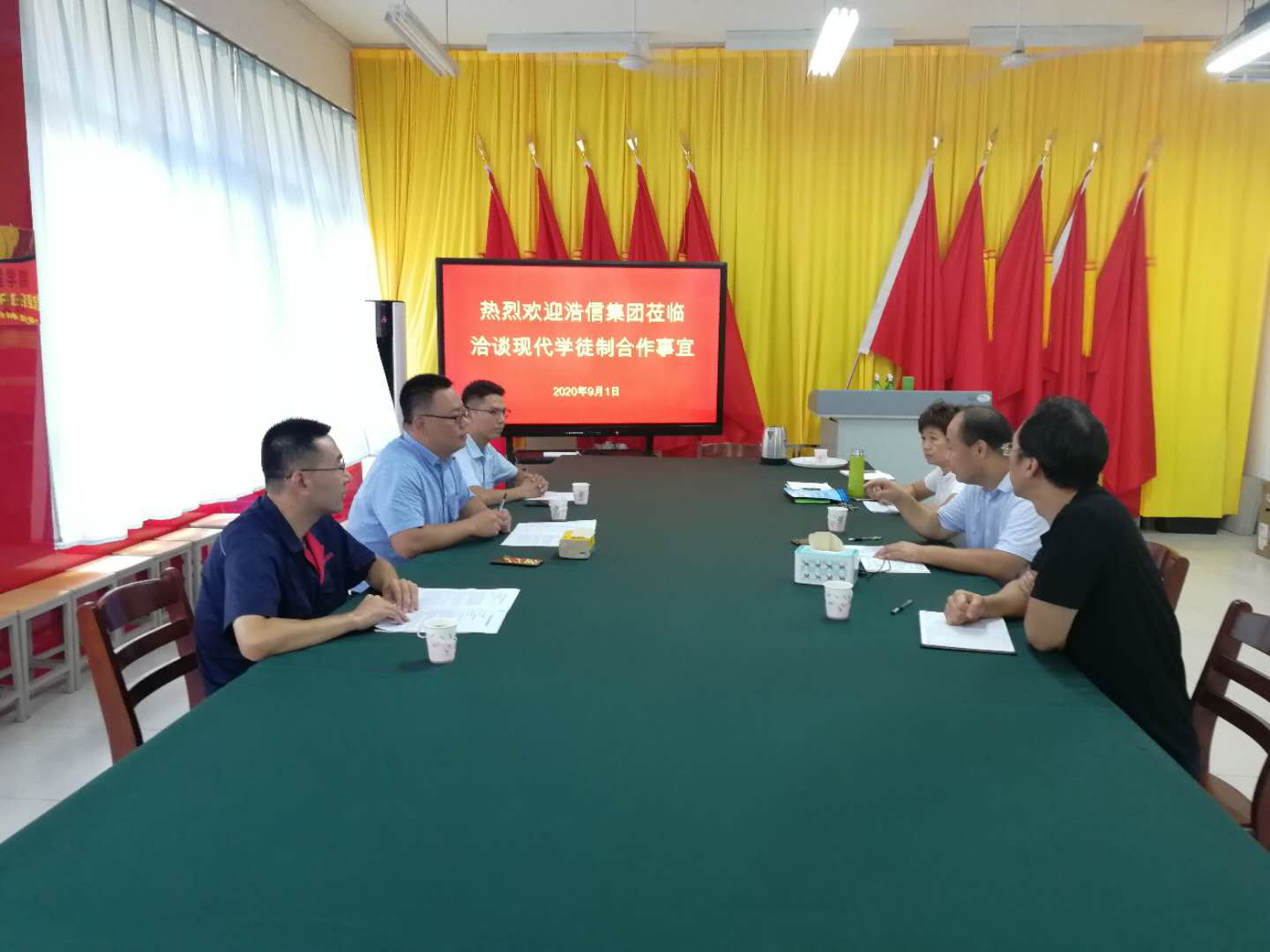 9月1日上午,山东浩信集团有限公司相关负责人一行3人到机电工程学院就现代学徒制合作事宜进行洽谈。机电工程学院负责同志、产学研合作办公室以及相关老师参加洽谈会。